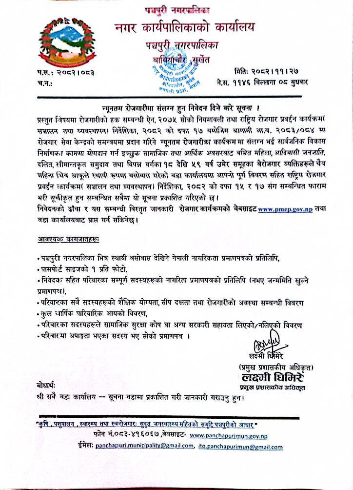 सम्बन्धित वडामा गई तोकिएको बेरोजगार फाराम भरेर आवश्यक कागजात सहित पेश गर्नुपर्ने ।